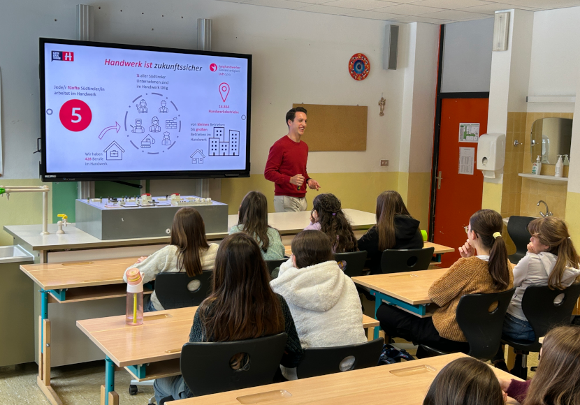 In St. Martin in Thurn stellte Elias Priller, Koordinator der Junghandwerker, den Jugendlichen die vielfältigen Möglichkeiten einer Karriere im Handwerk vor. Sein Vortrag ging über eine reine Aufzählung von Berufen hinaus: Er war eine Einladung, verschiedene Gewerke kennenzulernen, sich auszuprobieren und eigene Wege zu denken.