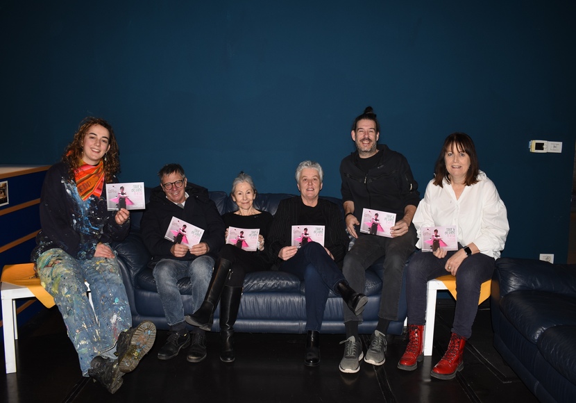 von links Carmen Maria Alber (Theatermalerin), Paul Tschigg (Dormizil EO), Gertraud Ingeborg (Schauspielerin), Beate Sauer (Regisseurin), Alexander Böhmler (Licht und Technik), Maria Lobis (Dormizil EO)