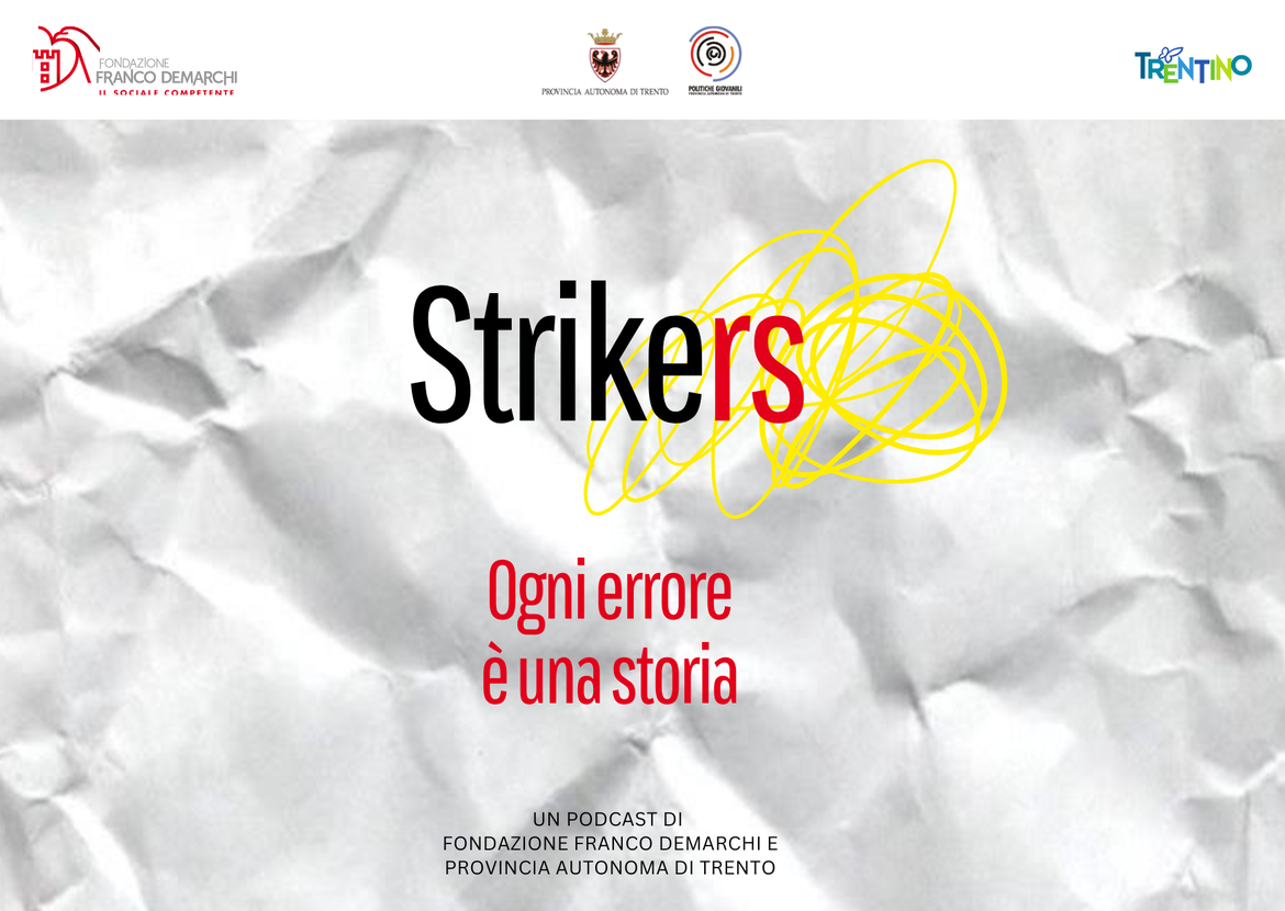 Prodotto da Fondazione Franco Demarchi e Provincia autonoma di Trento nell’ambito del programma formativo delle politiche giovanili del Trentino e realizzato da oSuonoMio, il podcast “Strikers, ogni errore è una storia” dà voce a nove finalisti delle passate edizioni del contest: Sofia Pasotto, Marco Picone, Anna Fiscale, Emanuele Del Rosso, Fabjan Thika, Gianluigi Rosa, Meike Hollnaicher, Diana Anselmo, Filippo Gamberoni.
