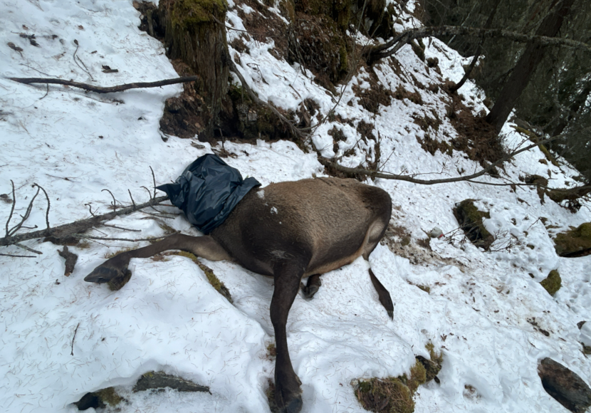 Der Hirsch mit abgetrenntem Kopf wurde laut der Polizei Ötz neben einer Straße entdeckt. Nach bisherigen Ermittlungen gehen die Beamten davon aus, dass das Tier nicht an dieser Stelle erlegt, sondern dort lediglich entsorgt wurde.