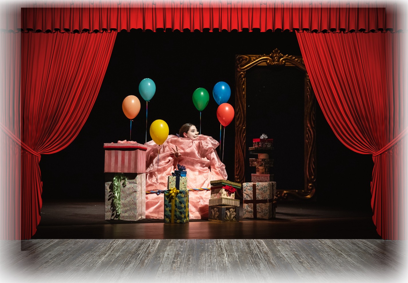 Il nuovo vestito dell’imperatrice è uno spettacolo la cui storia si presenta come il “sequel” della nota fiaba di H.C. Andersen e narra la storia della figlia dell’imperatore, Caterina. L’imperatrice Caterina vive nel suo palazzo sempre in compagnia di uno specchio magico che ha il compito di assicurarsi che la protagonista sia sempre rispettosa delle regole di comportamento e sempre esteticamente impeccabile. Lo specchio le permette di monitorare costantemente il suo aspetto e, se necessario, modifica il suo riflesso attraverso l’uso di filtri alla quale Caterina crede felicemente e senza alcun dubbio.