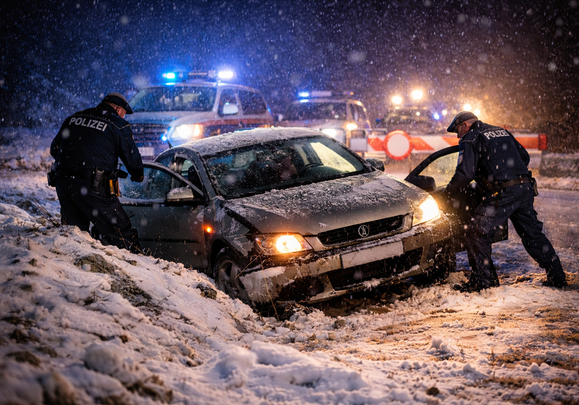Trotz Schneefalls und teilweise schneebedeckter Fahrbahn raste der Wagen über die Kärntner Straße und die B100 in Richtung Osten. Mehrere Anhalteversuche mit Blaulicht und Folgetonhorn ignorierte der Lenker und setzte seine Fahrt über mehrere Kilometer fort, wobei er zahlreiche schwere Verkehrsübertretungen beging.