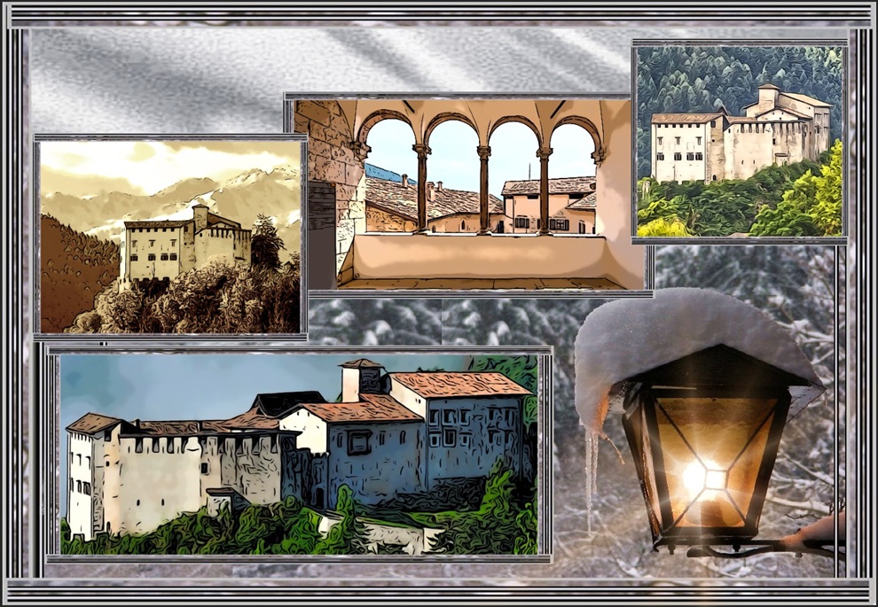 Come si è già ricordato, lo stile gotico, sviluppatosi in Europa tra il XII e il XV secolo, è riconoscibile, sinteticamente, per alcune caratteristiche principali: verticalità e slancio delle strutture, archi a sesto acuto, finestre ogivali spesso ampie e decorate, uso della luce come elemento simbolico e architettonico e ricca decorazione pittorica e scultorea. Il Castel Stenico, situato nella Valle delle Giudicarie, è uno dei castelli più suggestivi dell’Euregio e rappresenta un importante esempio di architettura medievale con forti influenze gotiche. Il castello sorge su uno sperone roccioso che domina l’abitato di Stenico e l’intera valle sottostante. Questa posizione strategica gli permise per secoli di controllare le vie di comunicazione tra il Garda, le Giudicarie e il Brenta. La prima menzione di Castel Stenico risale al 1163, quando il principe vescovo di Trento Adelpreto concede in feudo ai fratelli Bozone e Ottone una casa eretta sul dosso del castrum di Stinigo, probabilmente all’epoca non ancora un castello ma solo un insieme di fortificazioni rudimentali allestite per la difesa degli abitanti dei villaggi circostanti. Inizialmente feudo vescovile concesso a Bozone e ai suoi discendenti, nel 1238 viene affidato al nuovo podestà di Trento Sodegerio de Tito, nominato dall’imperatore Federico II per privare del potere temporale i vescovi tridentini.