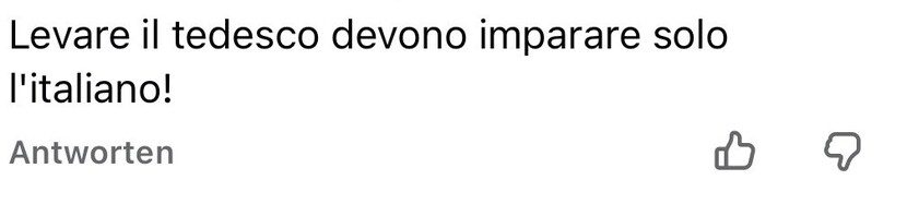 Eine etwas geschniegeltere Version desselben Reflexes lautet: „Ma fanno parte del territorio italiano… quindi il tedesco è una seconda lingua… A scuola si deve parlare italiano…“. Das klingt nach Ordnung, ist aber in Wahrheit die Umdeutung von Autonomie in ein Rangsystem: Italienisch als „erste“ Sprache, alles andere als dekorative Zweitsprache. Südtirol wird auf eine Provinzfantasie reduziert, in der Minderheitenrechte bestenfalls freiwillige Folklore sind.