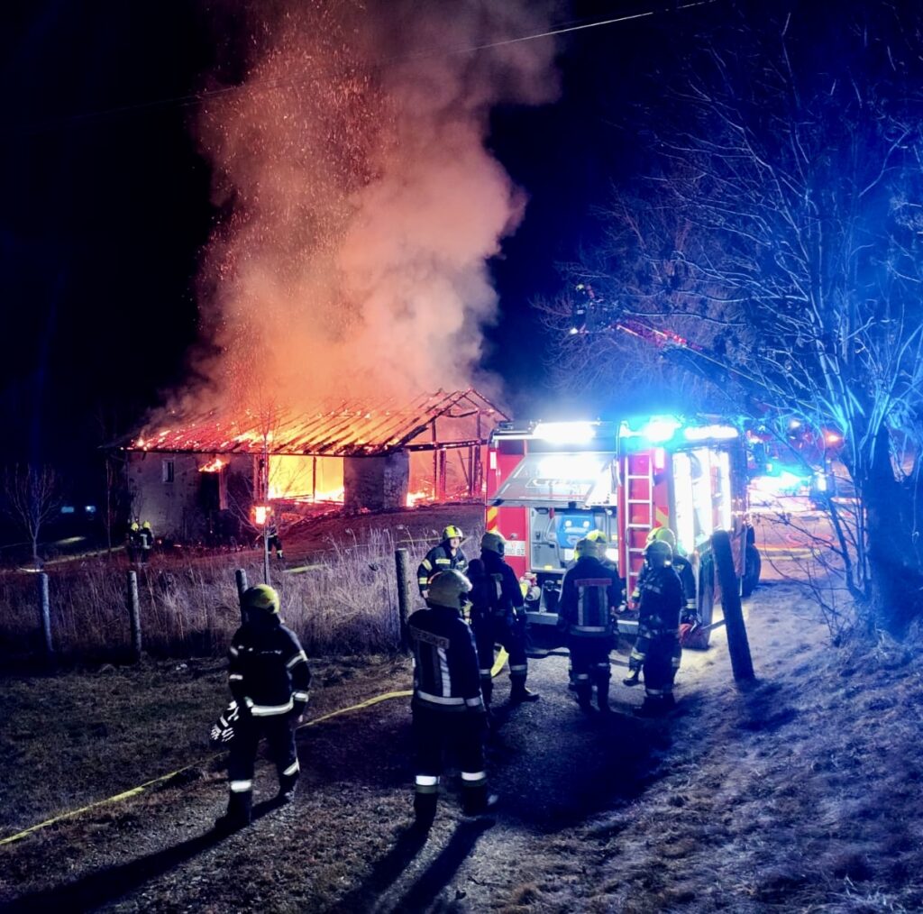 Um 02. 06 Uhr wurde die Feuerwehr Wiesen zu einem Stadelbrand im Ortsteil Flains alarmiert. Bei der Ankunft der Einsatzkräfte stand der Stadel einer unbewohnten Hofstelle bereits in Vollbrand. Die Feuerwehrleute konnten den Brand rasch unter Kontrolle bringen und eine weitere Ausbreitung erfolgreich verhindern.