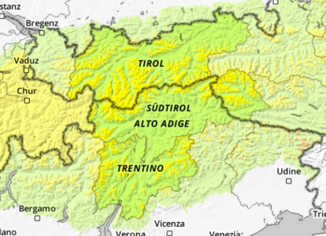 GRADO DI PERICOLO 1 = DEBOLEÂ (ma in aumento a GRADO 2 = MODERATO oltre il limite del bosco)