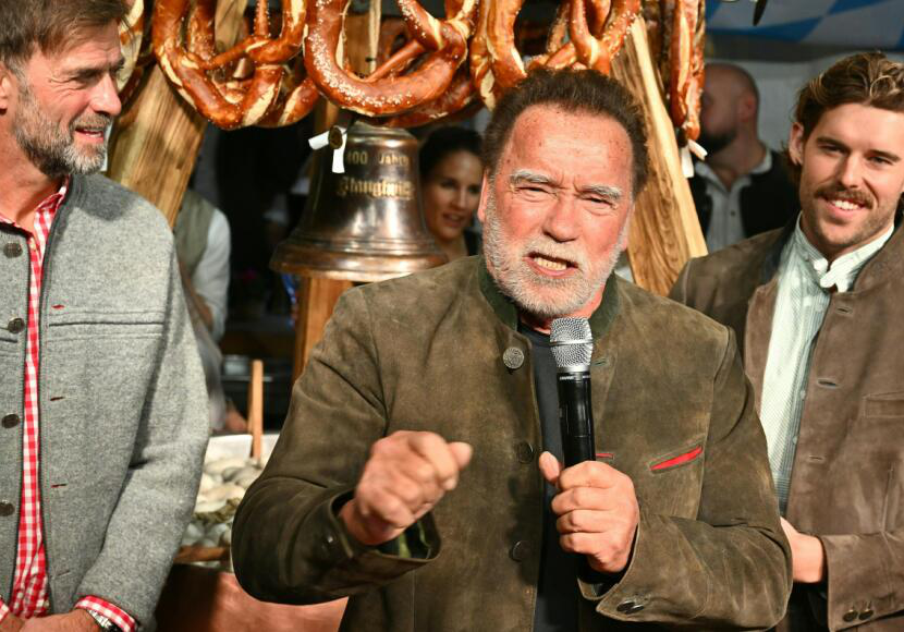 Die „Steirische Eiche“ kam dieses Mal ohne Langzeitfreundin Heather Milligan, die auch schon im Vorjahr ausgesetzt hatte. Dafür gab es mit seinem Sohn Christopher einen Wiederholungstäter: Dieser hatte sein Weißwurstparty-Debüt bereits im Jahr 2024 gefeiert und begab sich auch heuer wieder mitten hinein in den Weißwurst-Wahnsinn. Ein Neuling hingegen Klopp: Der jetzige Red Bull-Fußballchef und frühere deutsche Starcoach von Liverpool erschien zu diesem Anlass – wie Schwarzenegger – trachtig adjustiert und nahm schließlich gemeinsam mit Arnie, Christopher, Schwarzenegger-Buddy, Ex-Bodybuilder und Schauspieler Ralf Moeller, den Gastgebern Balthasar Hauser und Tochter Maria sowie Verona Pooth zur Eröffnung der Weißwurst-Sause Aufstellung um den Weißwurstkessel.