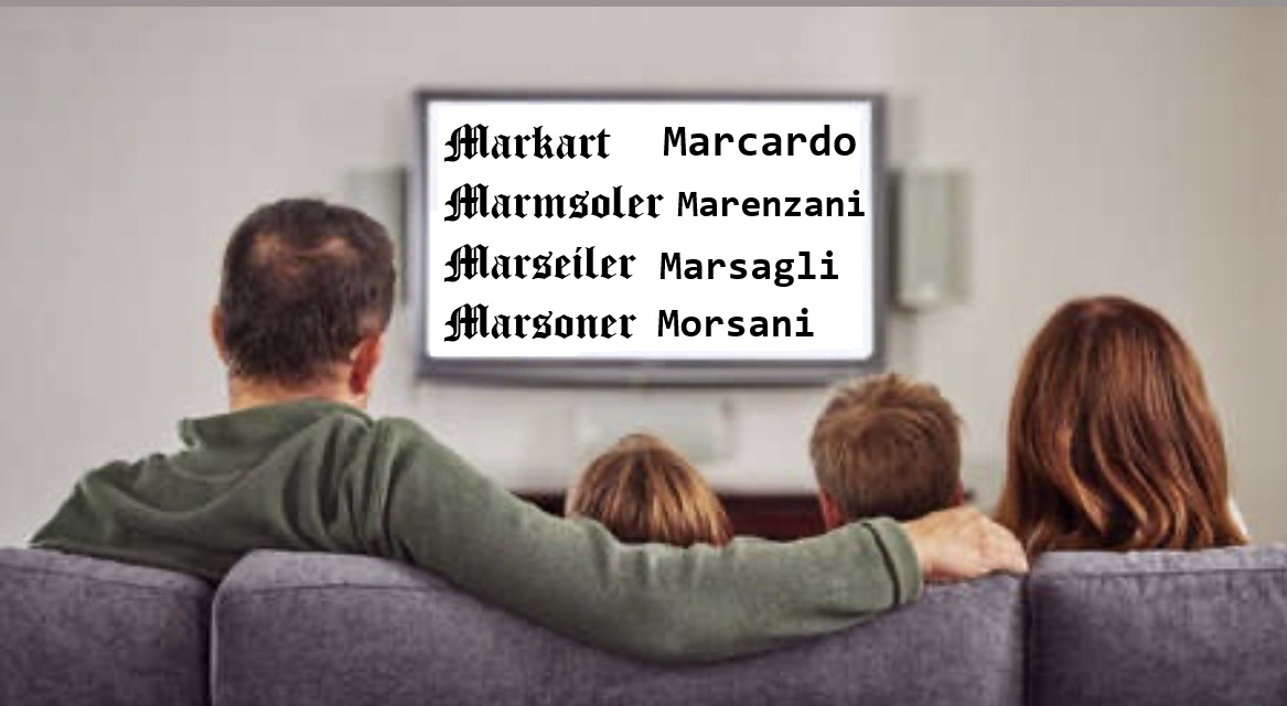 Idem per Marsòner che deriva dal nome di un maso o località chiamata “Marsòn (in Unteltal) / Marsòn(er)”. In origine quindi, il cognome serviva a indicare una persona legata a quel maso. L’italianizzazione è del resto scontata: Marsani o Morsani. (continua)
