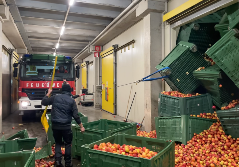 Apfelkisten in Kühlzelle umgestürzt