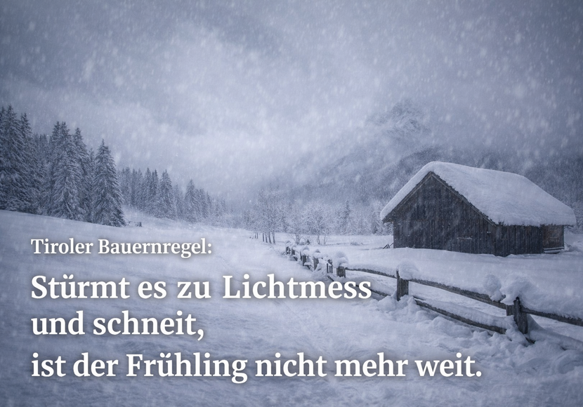 Maria Lichtmess galt zudem als Lostag. Zahlreiche Bauernregeln versuchten, aus dem Wetter am 2. Februar Rückschlüsse auf den weiteren Verlauf des Winters zu ziehen – ein Brauch, der im gesamten Alpenraum weit verbreitet war.