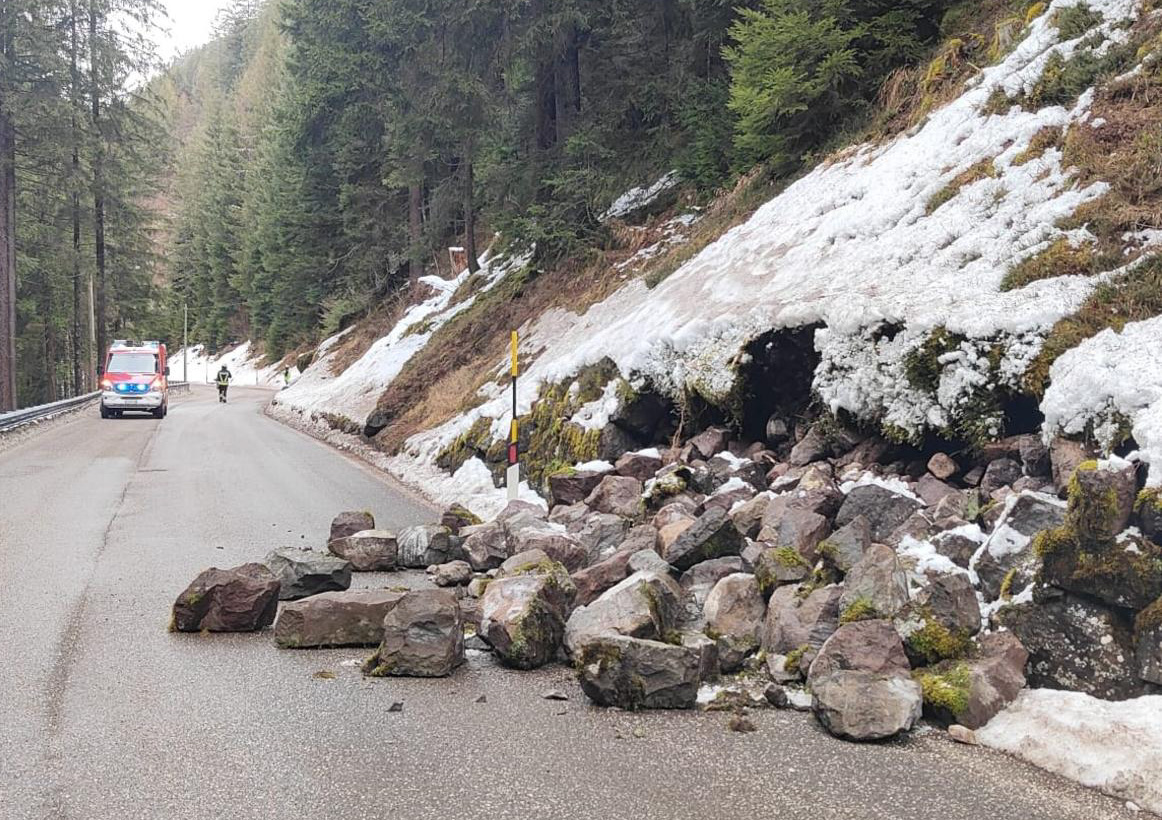 Il crollo si è verificato questa mattina sulla strada provinciale del Passo Manghen