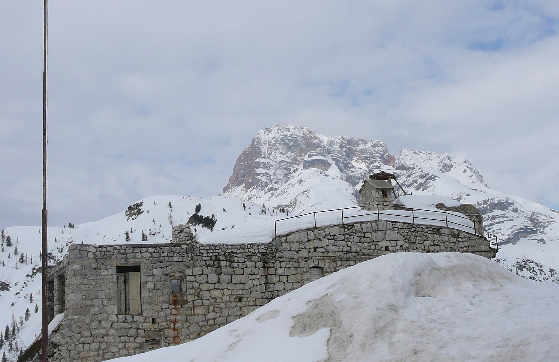 Costruito nel 1889/94, era già obsoleto allo scoppio della prima guerra mondiale e tuttavia servì allo scopo. Insieme a Werk Landro controllava l’accesso alla Val Pusteria e l’intera conca di Anpezo che, nel  maggio 1915,  era stata abbandonata per l’arretramento del fronte fino alla prevista (e possibile) linea difensiva.