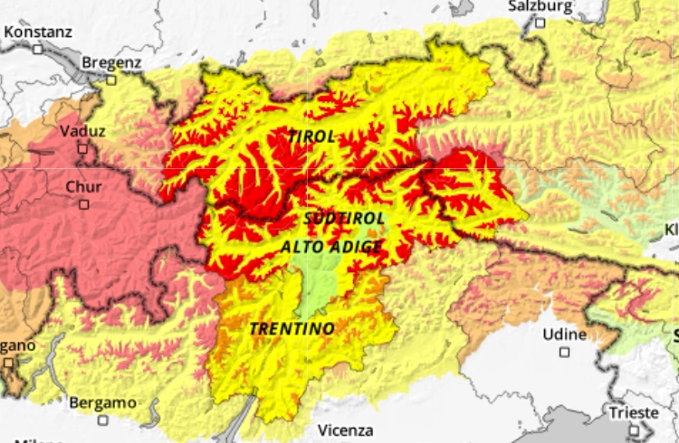 GRADO DI PERICOLO 4 su 5 = FORTE oltre il limite del bosco