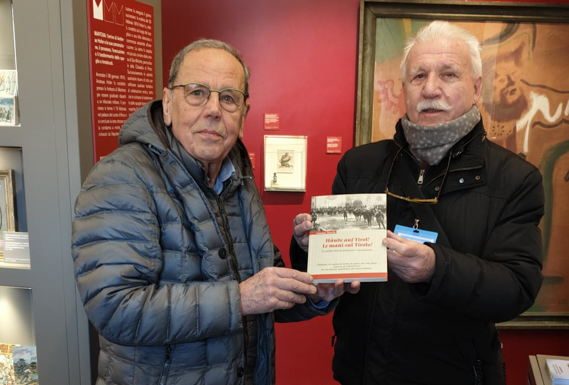 Presente a Mantova venerdì scorso, in occasione della cerimonia di commemorazione dell’eroe tirolese, Giuseppe Matuella ha voluto donare allo Spazio Hofer alcune copie del suo ultimo libro „Hände auf Tirol – Le mani sul Tirolo“.Â