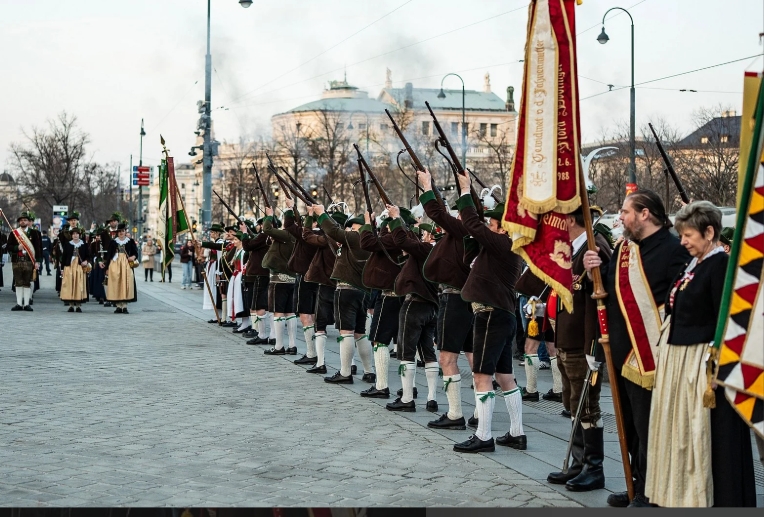La Serata del Tirolo è iniziata con la “Messa del cielo stellato” organizzata dalla rete Tirol hilft nello Stephansdom, celebrata dal decano Franz Troyer, seguita da un tradizionale  Landesüblicher Empfang ufficiale sulla piazza antistante il Parlamento.