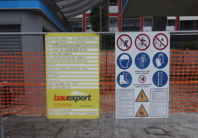 Bauherr des Projekts ist die Firma ENILIVE SPA mit Sitz in Rom. Da die Bauarbeiten noch bis zum 28. Juni und damit rund 15 Wochen andauern werden, bestand die Gemeinde Bozen auf eine zweisprachige Beschilderung – so wie es laut Gesetz vorgesehen ist.