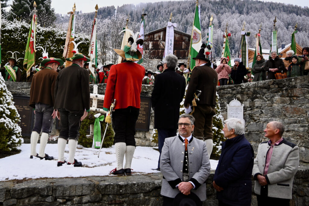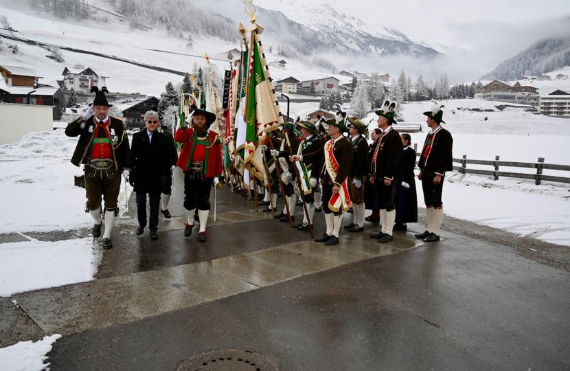 Bereits der Auftakt spiegelte die Verbundenheit von Tradition und Gemeinschaft wider: Trotz winterlicher Bedingungen mit Schneegestöber versammelten sich die teilnehmenden Kompanien beim Langlaufzentrum. Nach der Aufstellung und Frontabschreitung marschierten die Formationen – angeführt von der Bezirksleitung und begleitet von der Bürgerkapelle Sand in Taufers – zur Pfarrkirche zum Hl. Wolfgang.