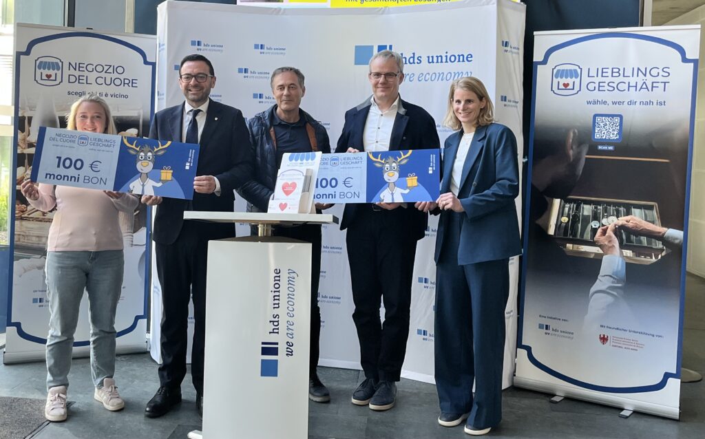 Wer abstimmt, hat wöchentlich die Chance auf Einkaufsgutscheine monni BON. In diesen Tagen fand im Hauptsitz des hds die Übergabe der Preise an die Gewinner der ersten Phase statt: Harald Gruber aus St. Pankraz, Noomi Ebner aus Rasen-Antholz, Fabian Leitner aus St. Lorenzen, Silvia De Bettin aus Bruneck, Sigrid Zagler aus Laas und Johanna Puner aus Villnöss.