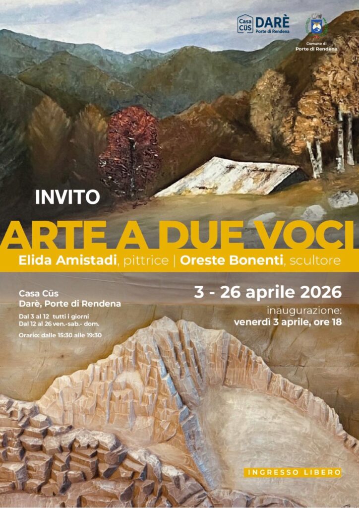 E‘ stata inaugurata venerdì scorso la nuova edizione della mostra “Arte a due voci”, ospitata negli spazi di Casa Cüs, a Darè fino al 26 aprile. Protagonisti di questa edizione sono due artisti locali, Elida Amistadi e Oreste Bonenti, uniti da una profonda sensibilità verso il paesaggio alpino e le tradizioni delle Giudicarie. Da qui il titolo “Arte a due voci”: un dialogo tra linguaggi diversi – pittura e scultura – che si intrecciano armoniosamente raccontando una stessa storia. Le opere in mostra – circa 50 complessive – offrono uno sguardo intenso e autentico sul territorio.