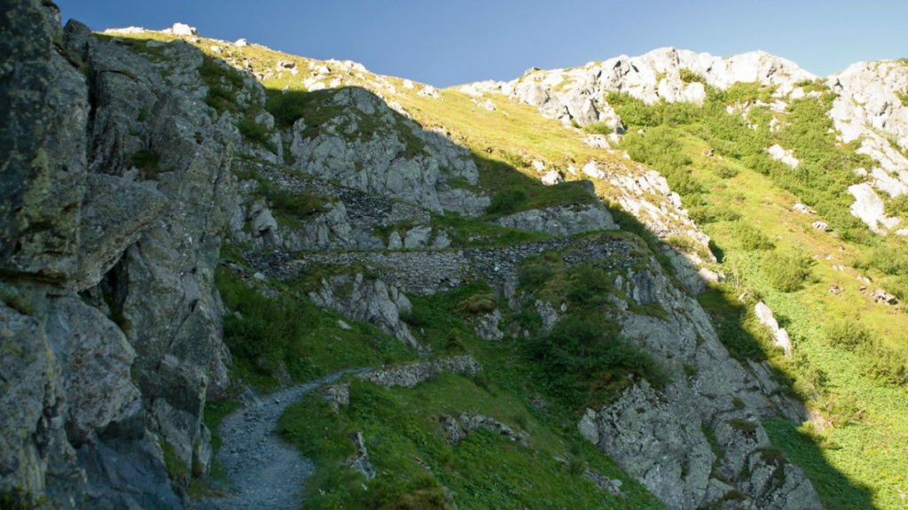 Restiamo nella zona delle Alpi Carniche: salendo lungo la strada e poi lungo la carrareccia in direzione del passo, non è difficile trovare tracce di quella guerra aspramente combattuta quassù, un secolo fa. Ripari, trinceramenti fortificati, pietre incise, crateri di artiglieria e di granate.