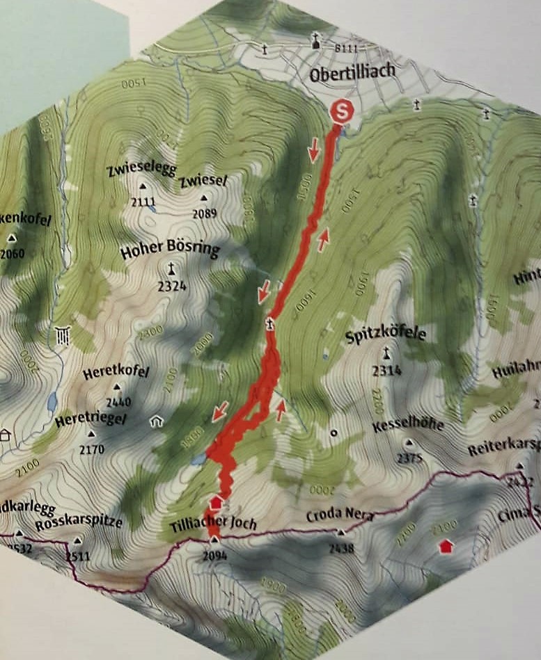 Percorso: Da Obertilliach si segue la strada forestale fino al Klapfsee, da qui si sale ancora per 3 chilometri (e 250 metri di dislivello) fino alla Porzehütte. Il sentiero 459 segue poi il percorso dell’antico tracciato „commerciale“, usato fin dai tempi del medioevo, e porta in un’altra ora al Tilliacher Joch / Forcella Dignas, dove si trova la croce di An der Front. Il rientro avviene per lo stesso percorso dell’andata.