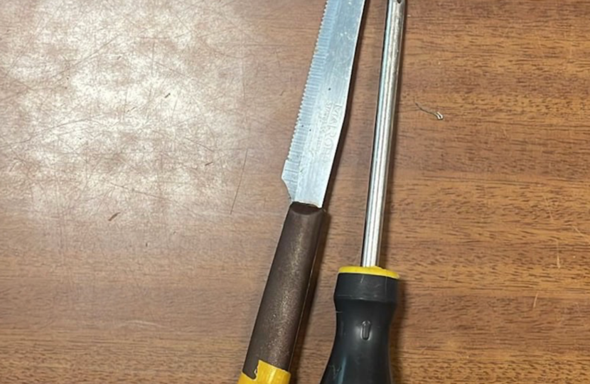 Gegen ihn wurde Anzeige wegen schweren Diebstahls sowie wegen des Mitführens von Gegenständen, die als Waffen verwendet werden können, erstattet.