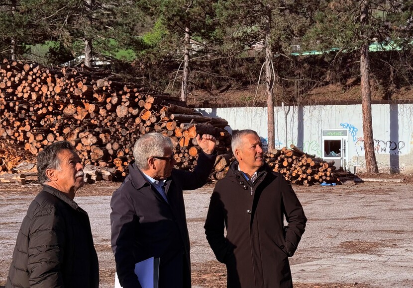 Landesrat Peter Brunner, Bürgermeister Andreas Schatzer und der frühere Gemeinderat Josef Tauber (von links) auf dem Areal der ehemaligen Verdone-Kaserne. (Foto: LPA/Thomas Bodner)