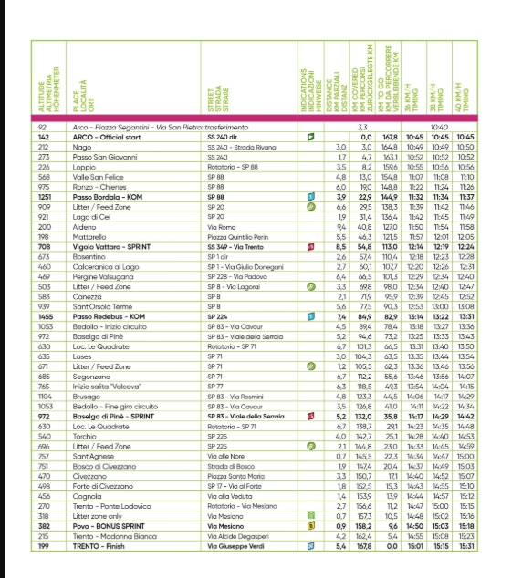 Completato l’anello, il gruppo punta verso Trento per un finale nervoso e tecnico, caratterizzato dall’ascesa di Povo, già snodo decisivo dei Campionati Europei del 2021. Dallo scollinamento mancano dieci chilometri al traguardo: i primi in discesa, gli ultimi in pianura, fino all’arrivo nel cuore di Trento.