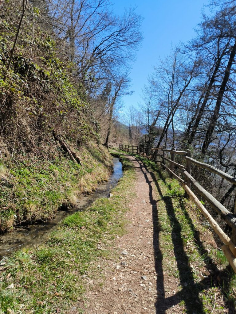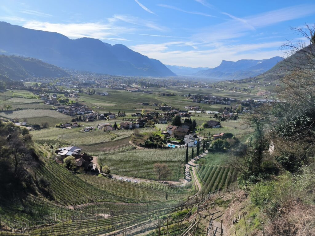 La prima tappa del nostro cammino di 3 giorni segue la roggia di Algund, che interseca anche la Jakobsweg e tocca il più bel punto panoramico di Castel Tirolo.