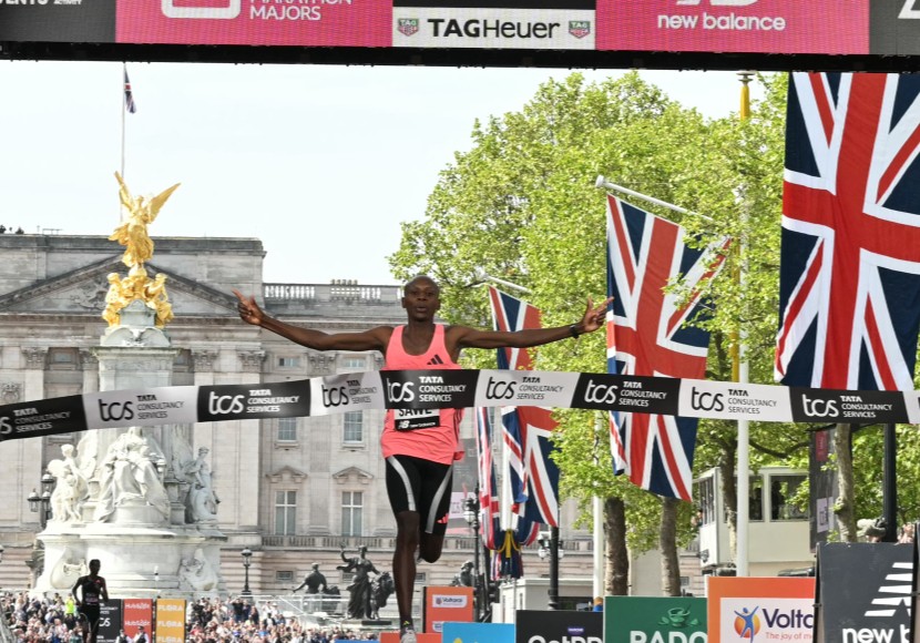 Kiptum war nur wenige Monate nach seinem Rekordlauf im Februar 2024 bei einem Verkehrsunfall in seiner Heimat ums Leben gekommen. Sawe stieß nun in eine neue Dimension vor und schrieb mit seiner Zeit Sport-Geschichte. Bei optimalen Bedingungen war das Tempo auch dank mehrerer Pacemaker von Beginn an extrem hoch. Lange lief eine größere Spitzengruppe zusammen, ehe sich Vorjahressieger Sawe und Yomif Kejelcha aus Äthiopien nach etwa 30 Kilometern absetzten. Kejelcha gab in der britischen Hauptstadt sein Marathon-Debüt.