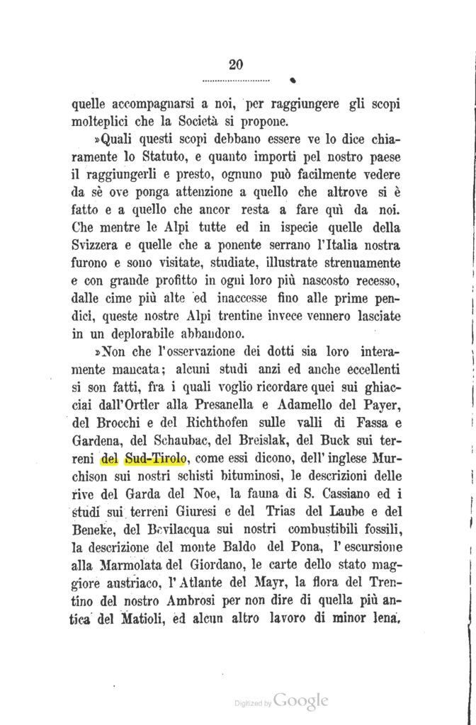 Mit dem Wiener Kongress im Jahr 1814 wurde Tirol als Ganzes wiederhergestellt und kehrte zurück zu Österreich. Doch bereits ab den 1840er Jahren kamen die italienischen Irredentisten ins Spiel. Immer lautstarker forderten sie eine neue Grenzziehung zwischen Italien und Österreich, und zwar entlang des Alpenhauptkammes. Bei diesem handelte es sich gemäß der irredentistischen Naturgrenztheorie um eine natürliche Grenze, die daher ebenso zu einer Völkergrenze, zu einer Staatsgrenze erhoben werden sollte. Mit diesem Ziel gründete im Jahr 1890 der italienische Nationalist und spätere Faschist Ettore Tolomei die irredentistische Zeitschrift „La nazione italiana“. De facto handelte es sich dabei um eine Propagandazeitschrift, in der Tolomei die Forderung der Irredentisten nach der Brennergrenze offensiver als alle seine Vorgänger anging. Was sich für Tolomeis Gebietsansprüche besonders eignete, waren italienisch klingende geografische Namen, von denen nichts an Tirol erinnern durfte. So prägte Tolomei im Jahr 1890 für den im Einzugsgebiet der Etsch befindlichen deutschen und ladinischen Teil Tirols den Begriff „Alto Trentino“. Diesen propagierte er einige Jahre, doch 1906 ersetzte er ihn durch „Alto Adige“, als er in Florenz das „Istituto di studi per l’Alto Adige“ und die gleichnamige propagandistische Zeitschrift „Archivio per l’Alto Adige“ gründete. Bemerkung am Rande: Sowohl das Institut als auch die Zeitschrift existieren bis heute und betätigen sich als Sprachrohr der geistigen Erben Tolomeis – darunter finden sich zahlreiche Mitglieder der „Accademia della Crusca“ – die die faschistische Toponomastik Südtirols, angefangen bei „Alto Adige“, bis heute mit pseudowissenschaftlichen Argumenten verharmlosen und verteidigen. Doch kehren wir zurück ins Jahr 1906: Mit dem Begriff „Alto Adige“ machte sich Tolomei den ursprünglich napoleonischen Begriff zu eigen, der über 90 Jahre davor nur vier Jahre lang existiert und ein ganz anderes Gebiet bezeichnet hatte. Für Tolomei war „Alto Adige“ nicht nur ein Name, sondern auch Programm. Tolomei sagte wörtlich: „Finché decorre il rivo e il fiume in giù, la ragione l’ho io. Combinazione che il fiume e il rivo andassero all’insù, dirò che ho torto e che hai ragione tu.“.