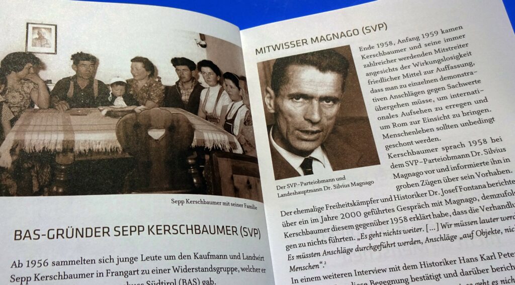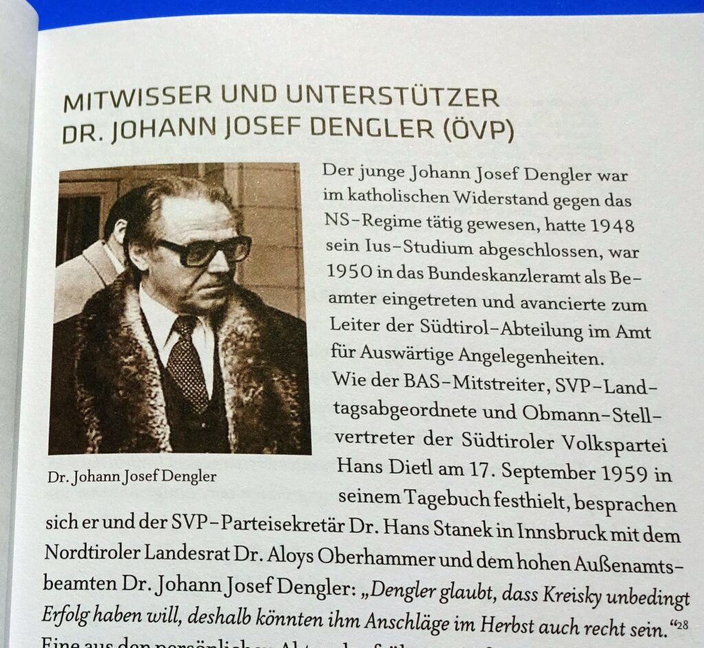 Ein offenes Bekenntnis österreichischer Politiker hätte Rom die Möglichkeit gegeben, umgehend alle Verhandlungen mit Österreich scheitern zu lassen und Österreich vor der Weltöffentlichkeit anklagend an den Pranger zu stellen.“ Heute ist diese Brisanz nicht mehr gegeben. Bedeutende Politiker wie der Landeshauptmann und SVP-Obmann Dr. Silvius Magnago haben öffentlich kundgetan, dass das verbesserte zweite Autonomiestatut vor allem mithilfe der Anschläge der Freiheitskämpfer der 1960er Jahre erreicht worden ist. Heute kann hiermit auch die wertvolle Dokumentation des Historikers Helmut Golowitsch über die Unterstützung des „Befreiungsausschusses Südtirol“ (BAS) durch hohe und höchste Politiker der Öffentlichkeit vorgelegt werden, ohne politischen Schaden anzurichten.