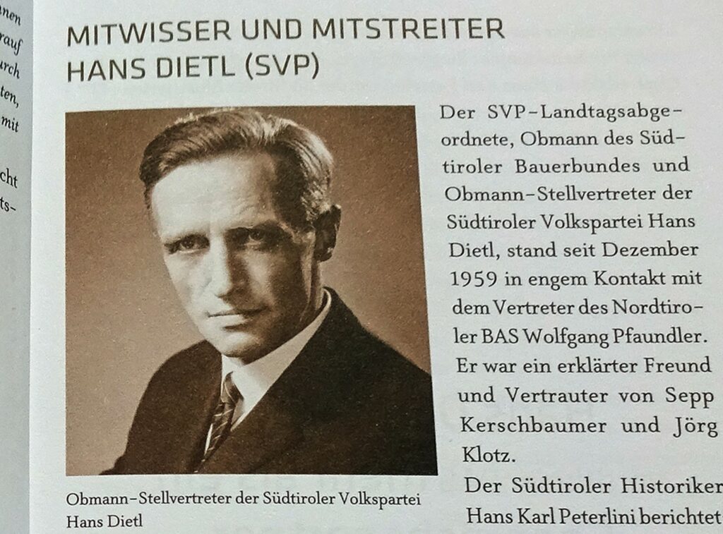 „Die Aktivisten des Südtiroler Freiheitskampfes der 1960er Jahre hatten Vieles erdulden müssen: Verfolgung, Inhaftierung, Folter, langjährige Haftstrafen, beruflichen Ruin. Italienische Politiker – auch solche mit faschistischer Vergangenheit – und die mit ihnen verbündete Presse bezeichneten die Freiheitskämpfer gerne als „Pangermanisten“ und unterstellten ihnen eine „Nazi“-Gesinnung.